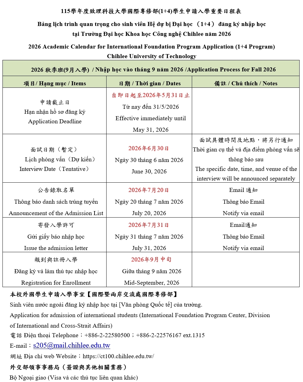 國際專修部招生簡章 Hướng dẫn tuyển sinh Hệ dự bị đại học 1+4
